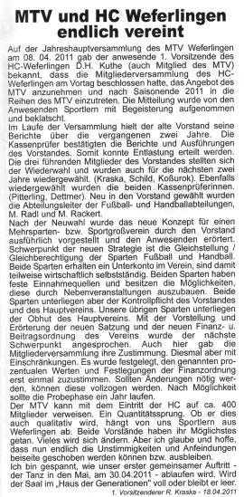 MTV Weferlingen - HSV Haldensleben II 7:10
